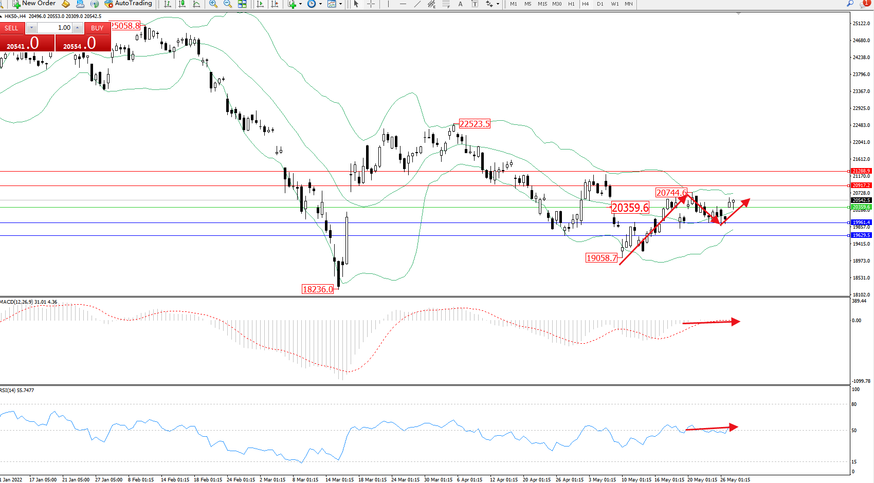 香港恒生指数5月27日(周五)收盘上涨581.16点,涨幅2.89%,报20697.36点;受隔夜美股大幅反弹带动,港股全天表现强势,三大指数均大幅收涨,回港科技股领衔走高,致恒生科技指数涨,恒指上扬超500点涨。阿里巴巴、百度发布超预期财报,分别大涨12.21%及14.26%,表现尤为亮眼,腾讯、美团、京东等权重科技股普涨;阿里概念股亦全线走强。