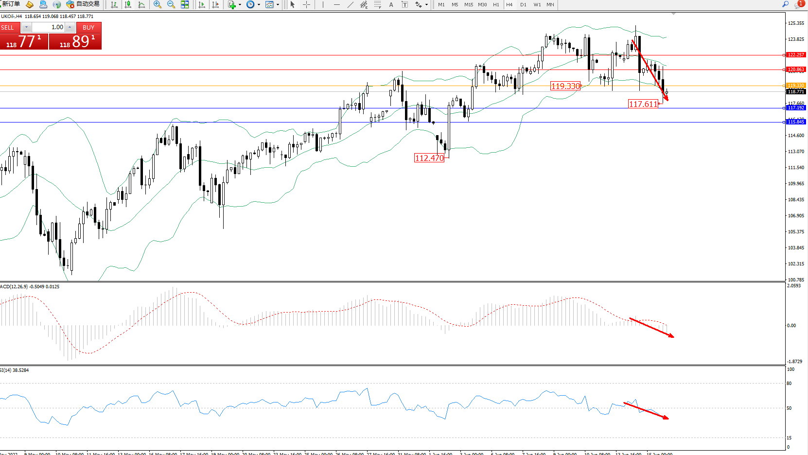 布油UKOil——4小时K线图显示:
