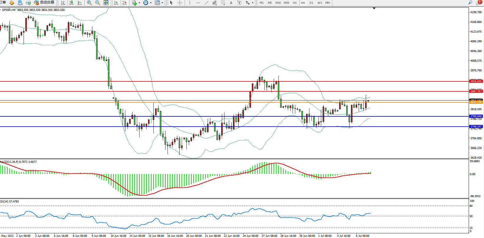 标普500指数7月6日(周三)收盘上涨13.71点,涨幅0.36%,报3845.10点;会议纪要显示官员们认为如果通胀持续高企,有必要采取“更具限制性”的货币政策后,美债市场抛售加剧;官员们认为7月很可能加息50或75个基点,这点和主席鲍威尔在上次会后记者会上的表述一致。