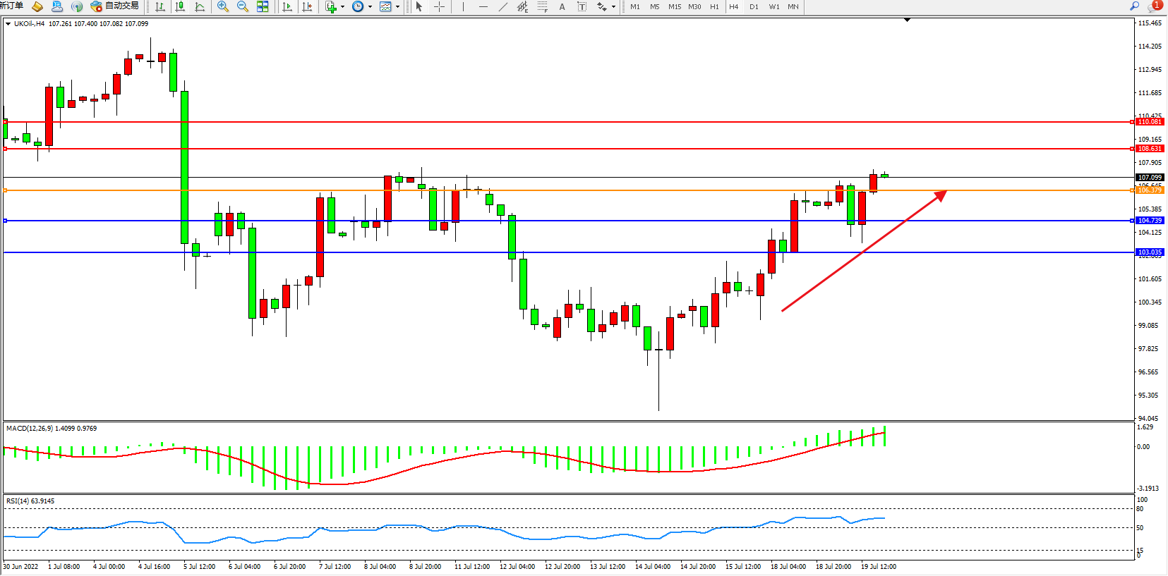 布油UKOil——4小时K线图显示: