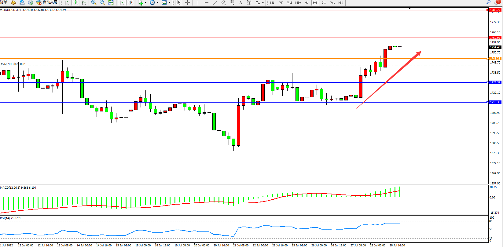 交易策略:在1746.00之上看涨,目标1760.00       1780.00