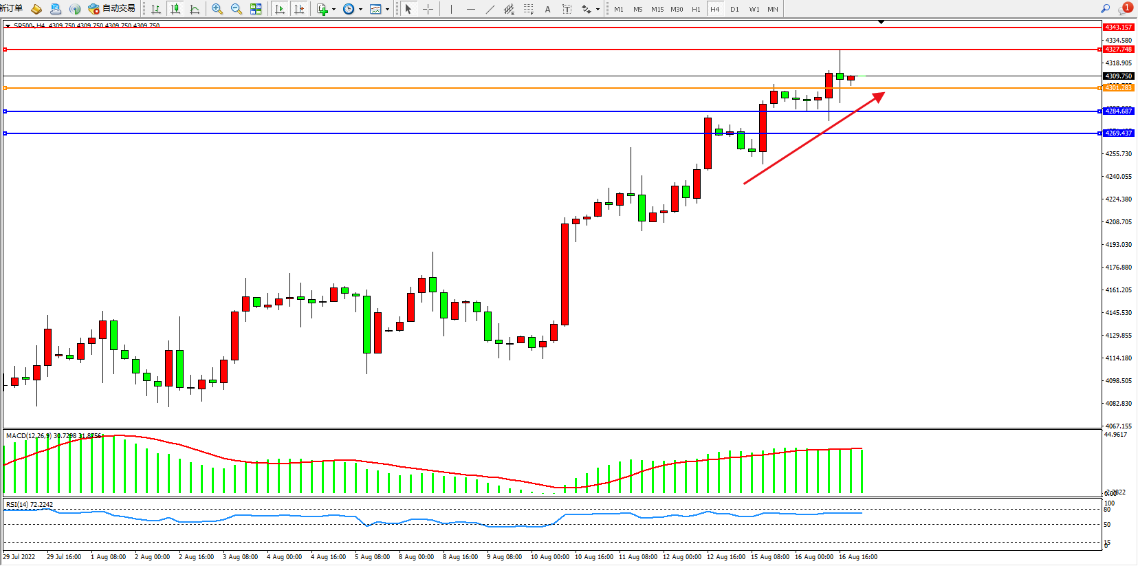 标普SP500——4小时K线图显示: