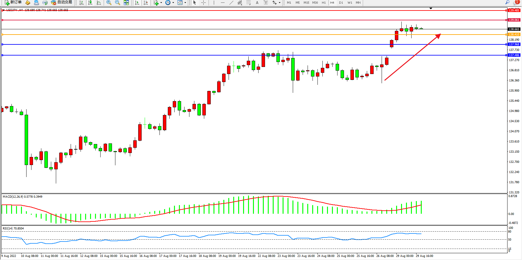 美元兑日圆维持138.665附近震荡,美联储和日本央行政策分歧,将进一步扩大美日利差,为此恐驱使美元/日圆上探24年高点139.38。美国短债收益率保持上升,两年期美债收益率维持在两个月高点附近。