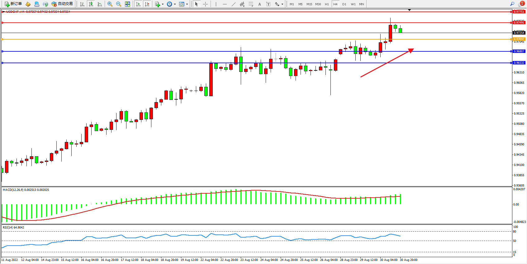 交易策略:0.97097上方看涨,目标0.97491、0.97751