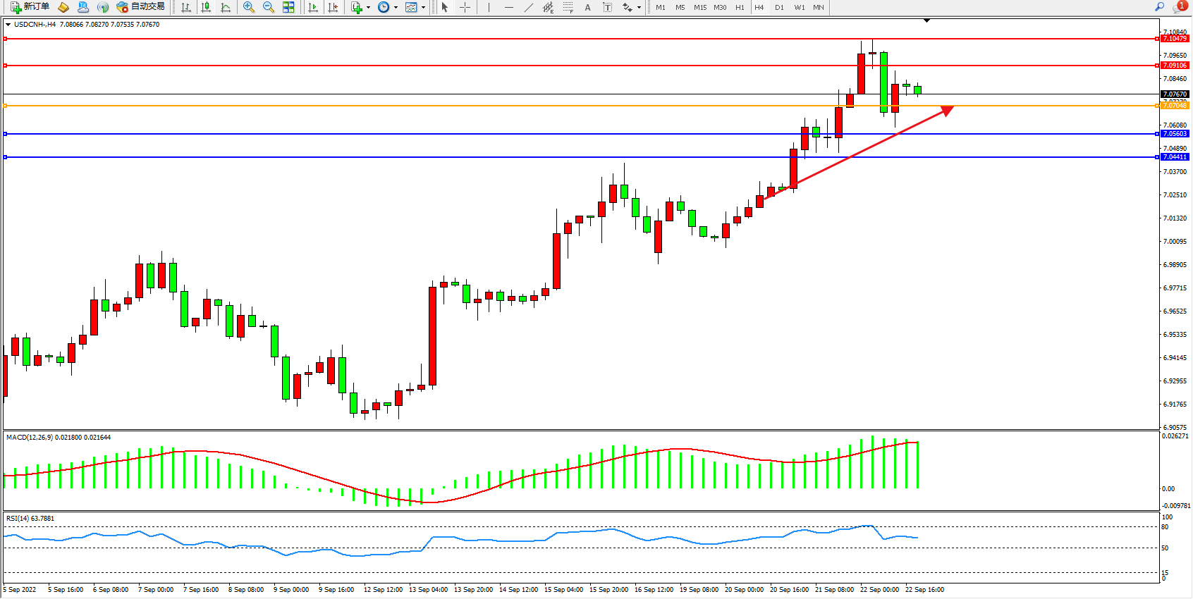备选策略:7.07048下方看跌,目标7.05603、7.04411