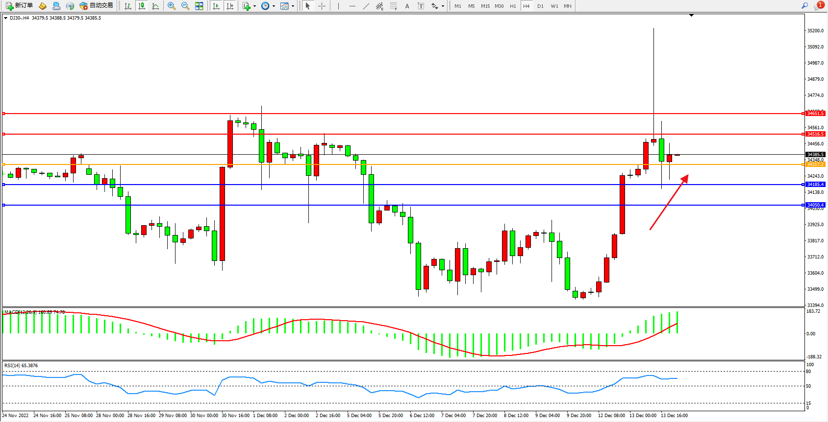 道琼斯指数12月13日(周二)收盘上涨105.65点,涨幅0.31%,报34110.69点;美国11月整体CPI年率录得7.10%,为去年12月份以来新低,预期值和前值分别为7.30%和7.70%;11月核心CPI年率录得6%,预期值和前值分别为6.10%和6.30%。