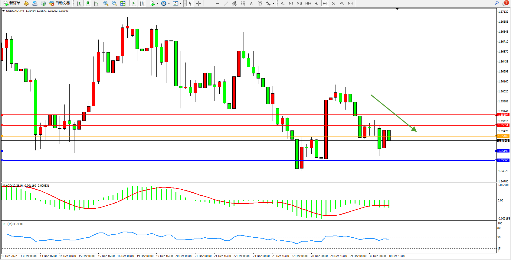 交易策略:1.35402下方看跌,目标1.35198、1.35069