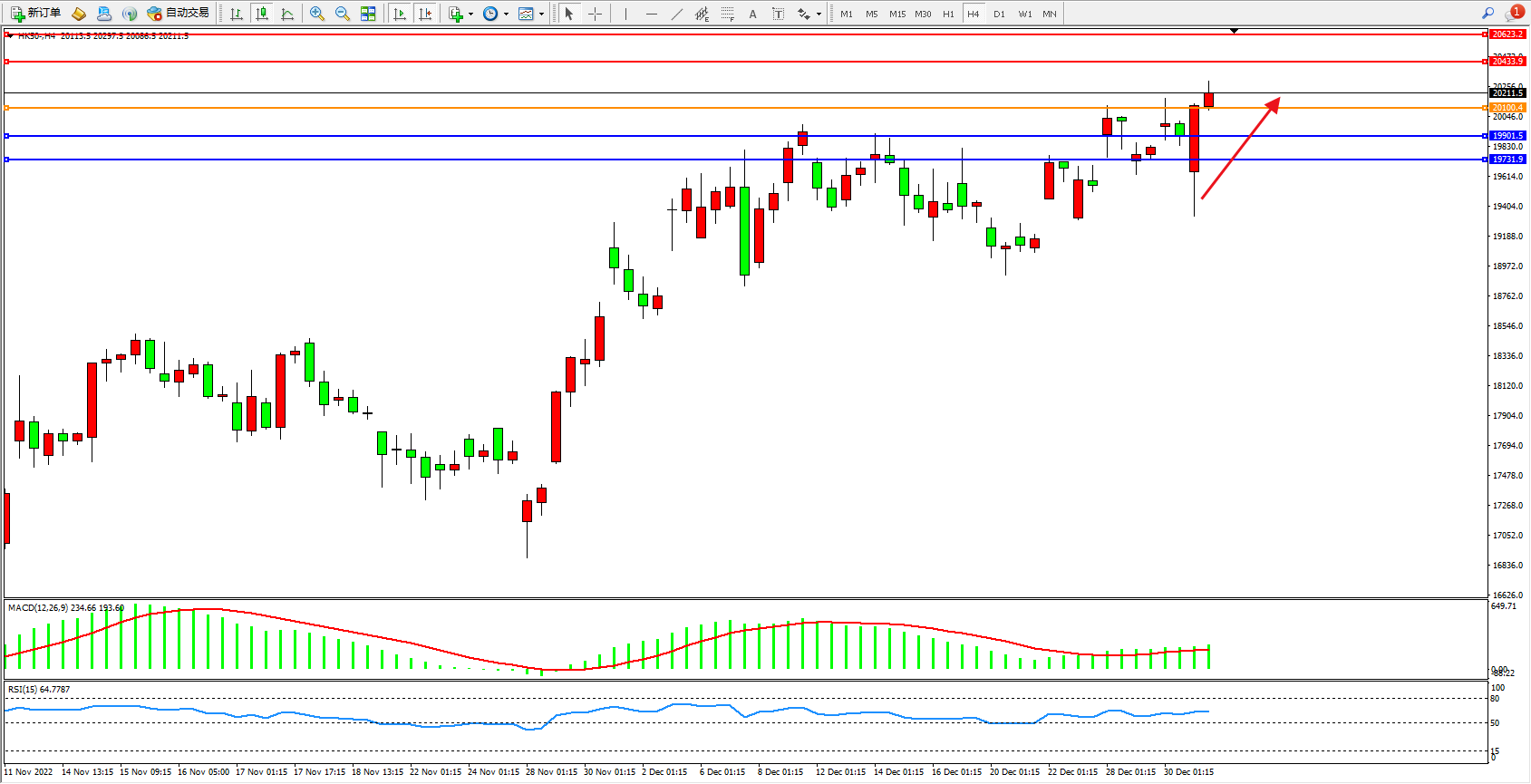 恒指HK50 4小时图