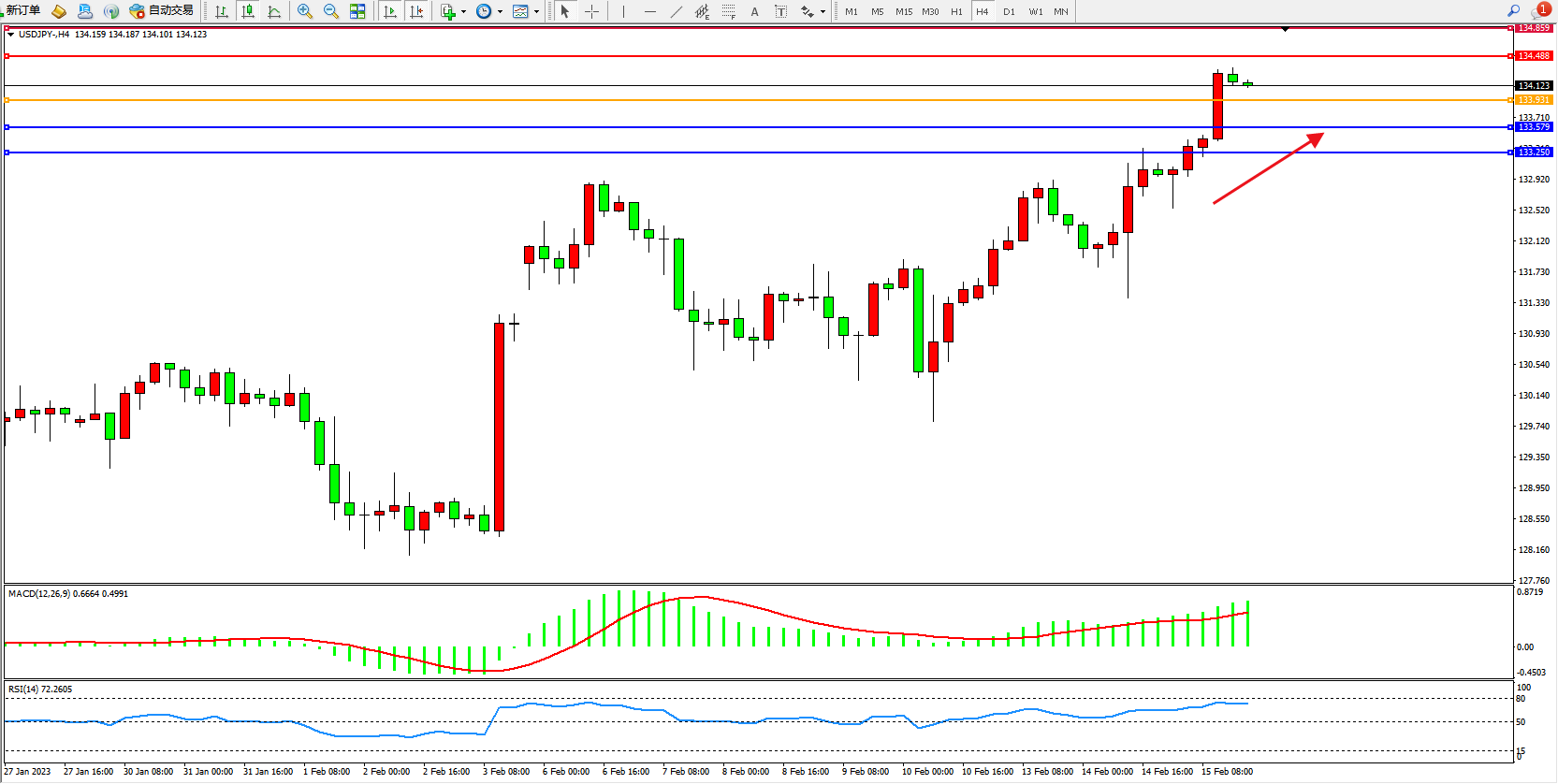 美元兑日圆维持134.123附近震荡,据日经报道,议会听证会可能于2月24日举行。岸田文雄最近强调,下一任央行行长需要具备“全球沟通技能”,并能够与全球同行密切协调。