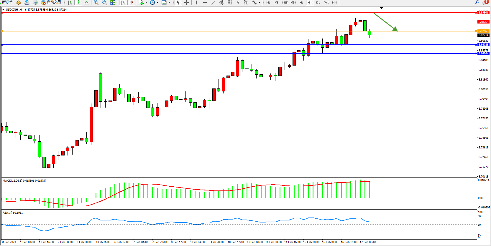 备选策略:6.87663上方看涨,目标6.88765、6.89901