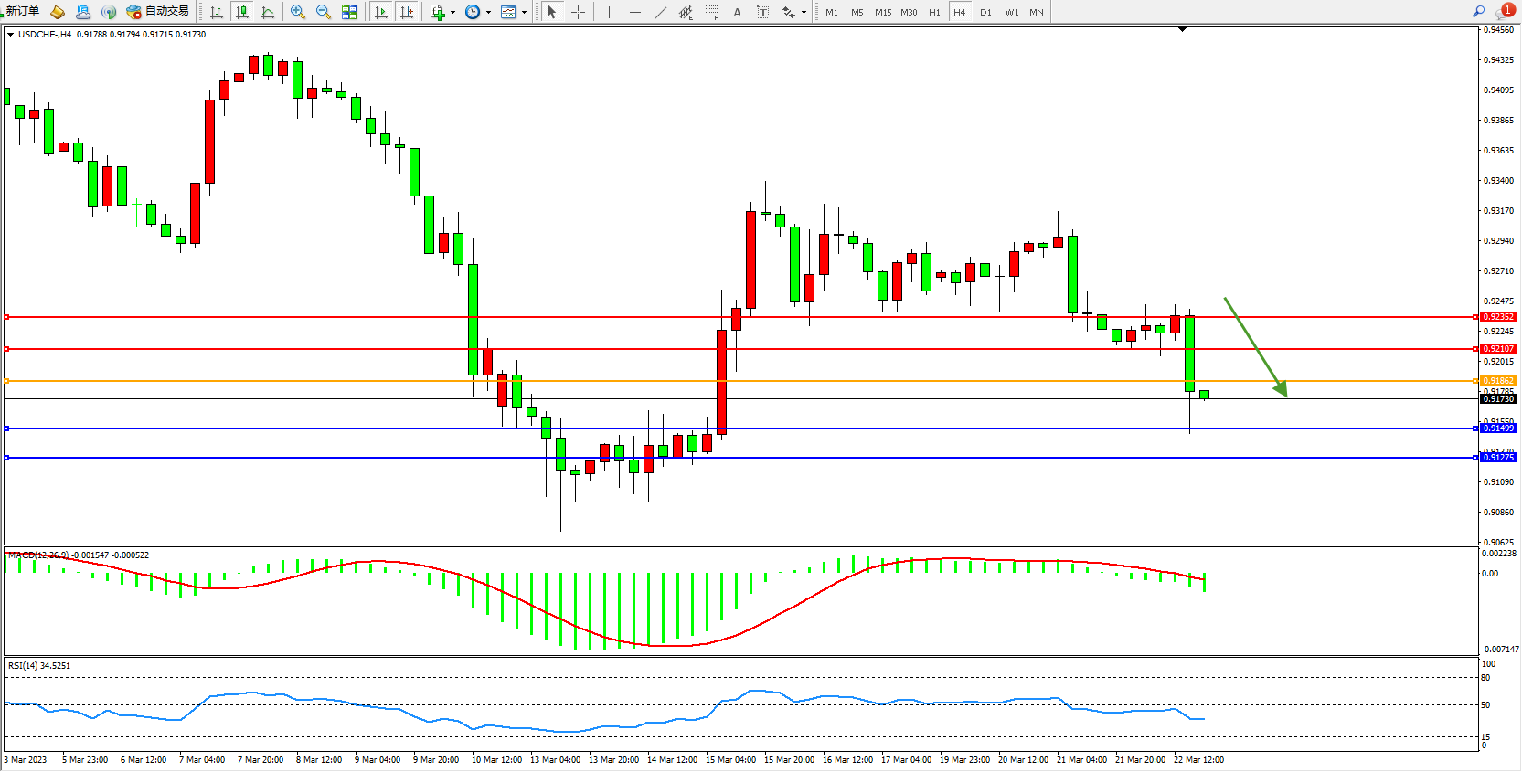 交易策略:0.91862下方看跌,目标0.91499 0.91275