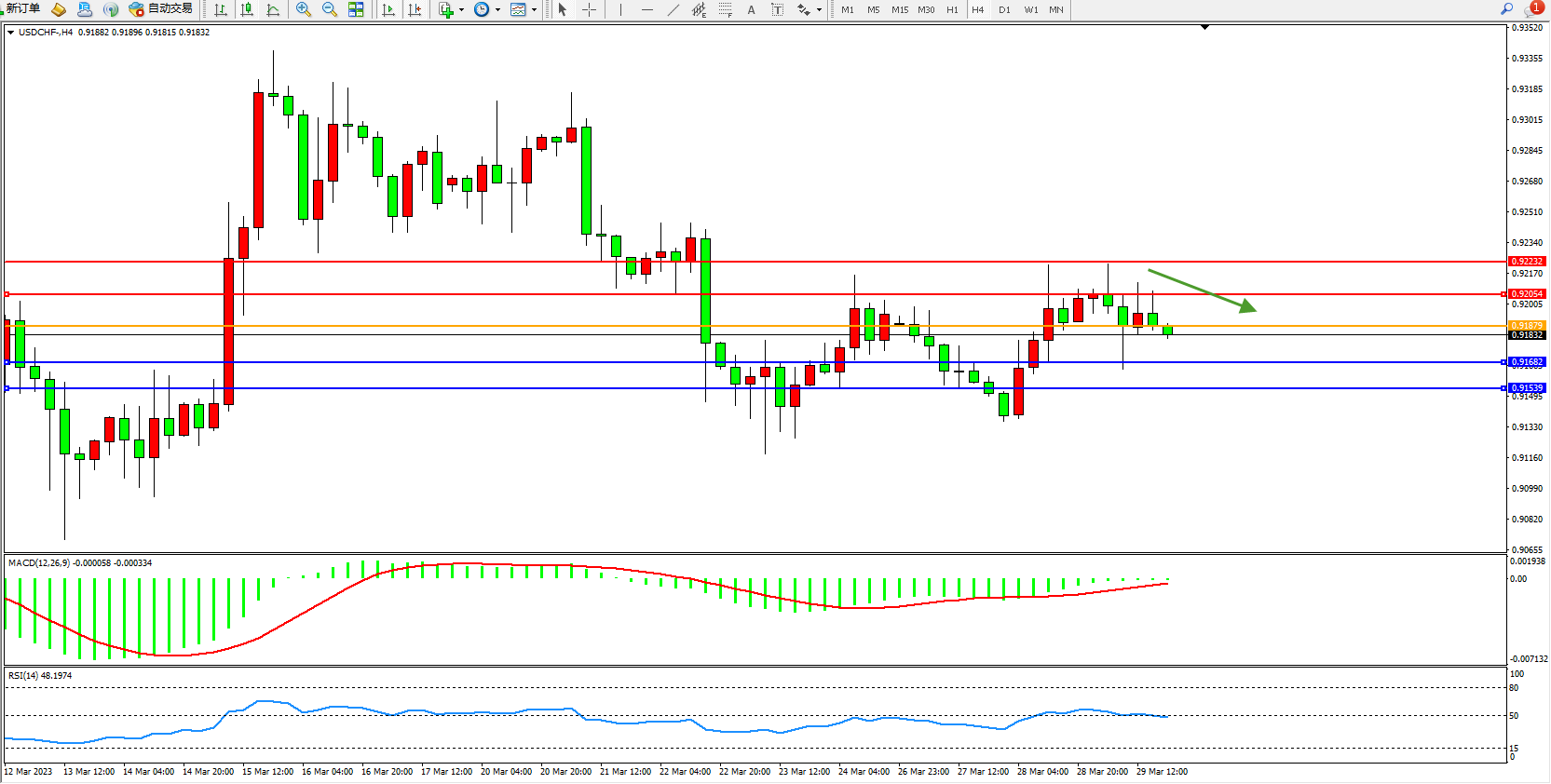 美元兑瑞郎维持0.91832附近震荡,瑞士3月ZEW投资者信心指数下跌29点,至-41.3。由于近期银行业动荡,股票回报前景受到影响。长期通胀预估显示,尽管价格和金融稳定之间存在权衡的可能性,但瑞士央行的可信度仍然很高。