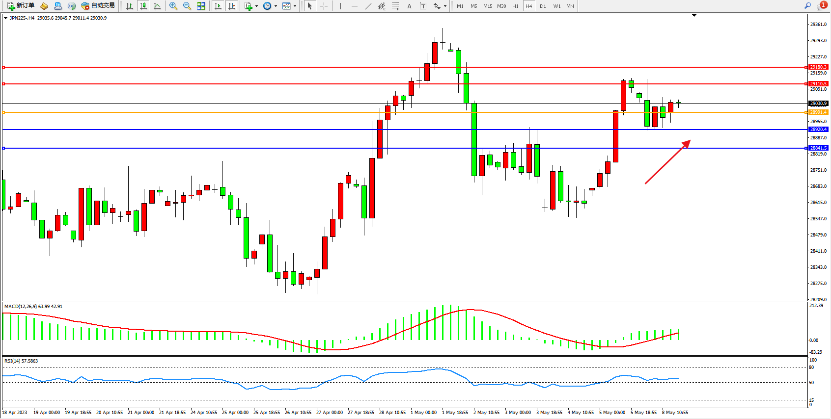 日经225指数5月8日(周一)收盘下跌199.45点,跌幅0.68%,报28958.50点日本周一将COVID-19的法律地位降至与季节性流感相同的类别,并大大放宽了其密集型医疗规则,这标志着日本在处理新冠病毒三年后的一个重大转变。政府表示会提供免费的疫苗注射,将不再对检测呈阳性的患者进行隔离,患者也将在普通医院而非指定的机构接受治疗。