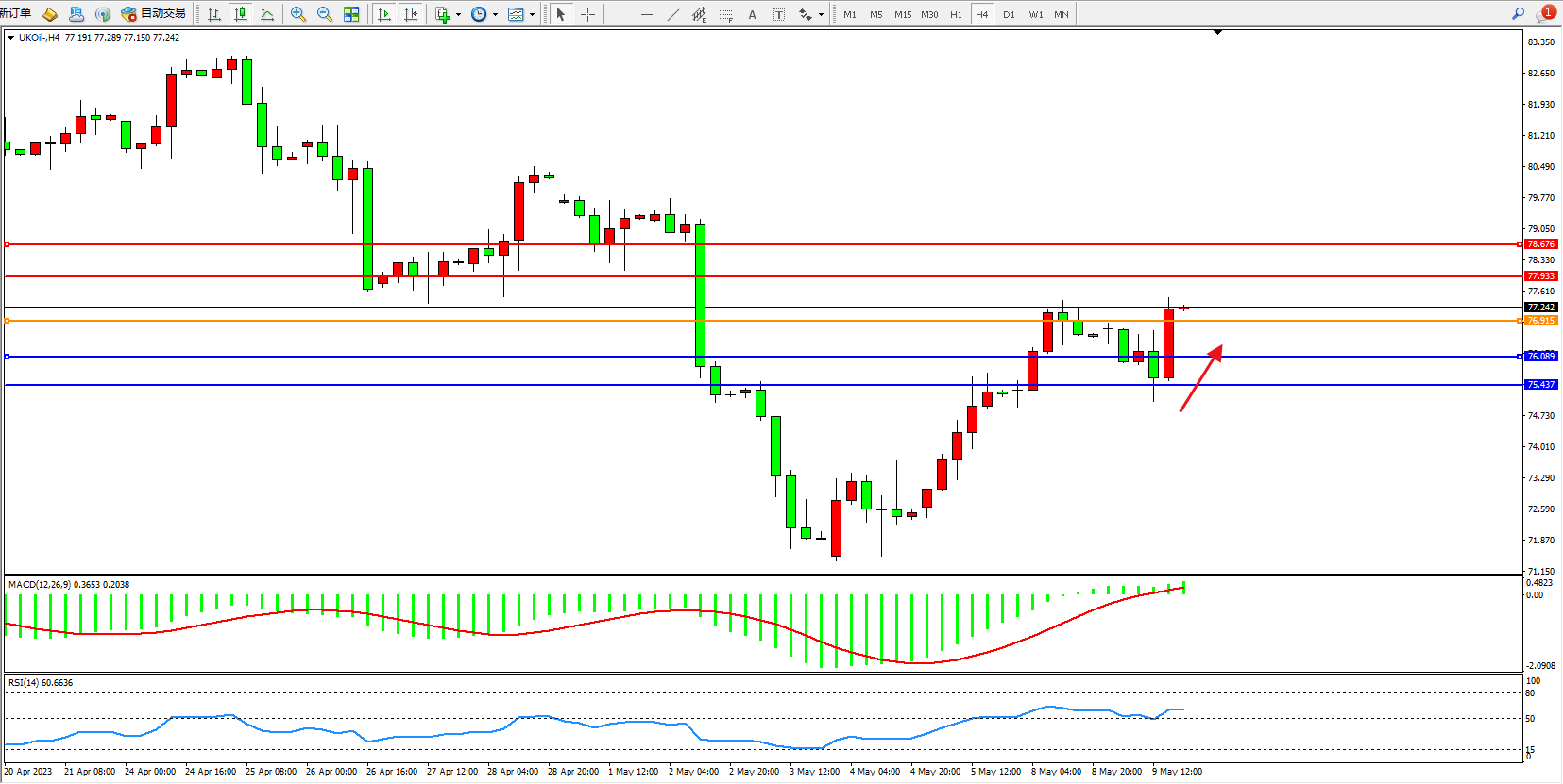 布油维持77.242附近震荡,美银:将2023年布伦特原油平均价格预测下调至每桶80美元,“负面宏观趋势将放大未来的需求疲软”。将2024年布伦特原油价格预测维持在90美元/桶,因为相信经合组织的需求最终会改善,而欧佩克+可能会继续“先发制人地管理供应”。