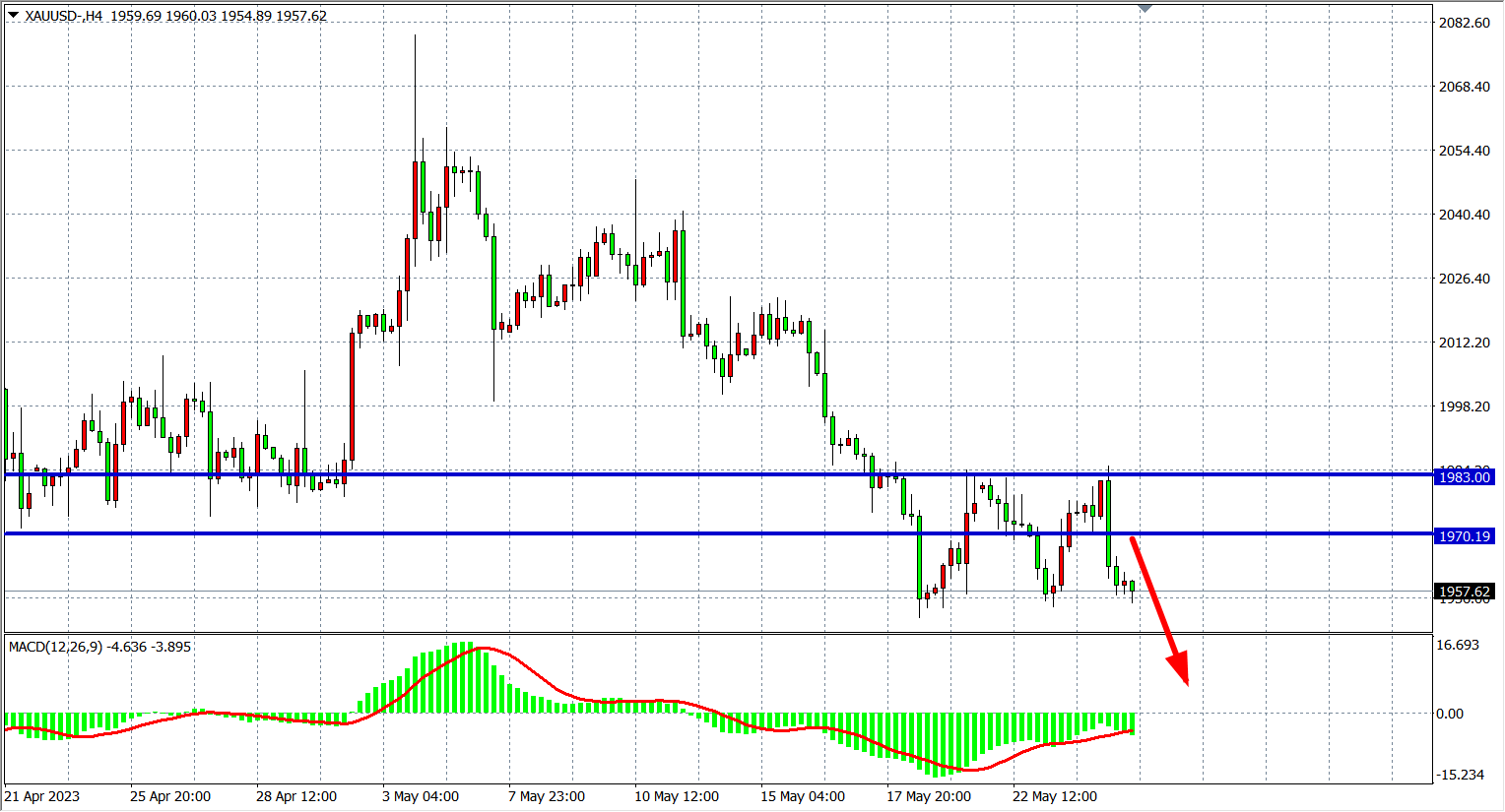 现货黄金XAUUSD 四小时图