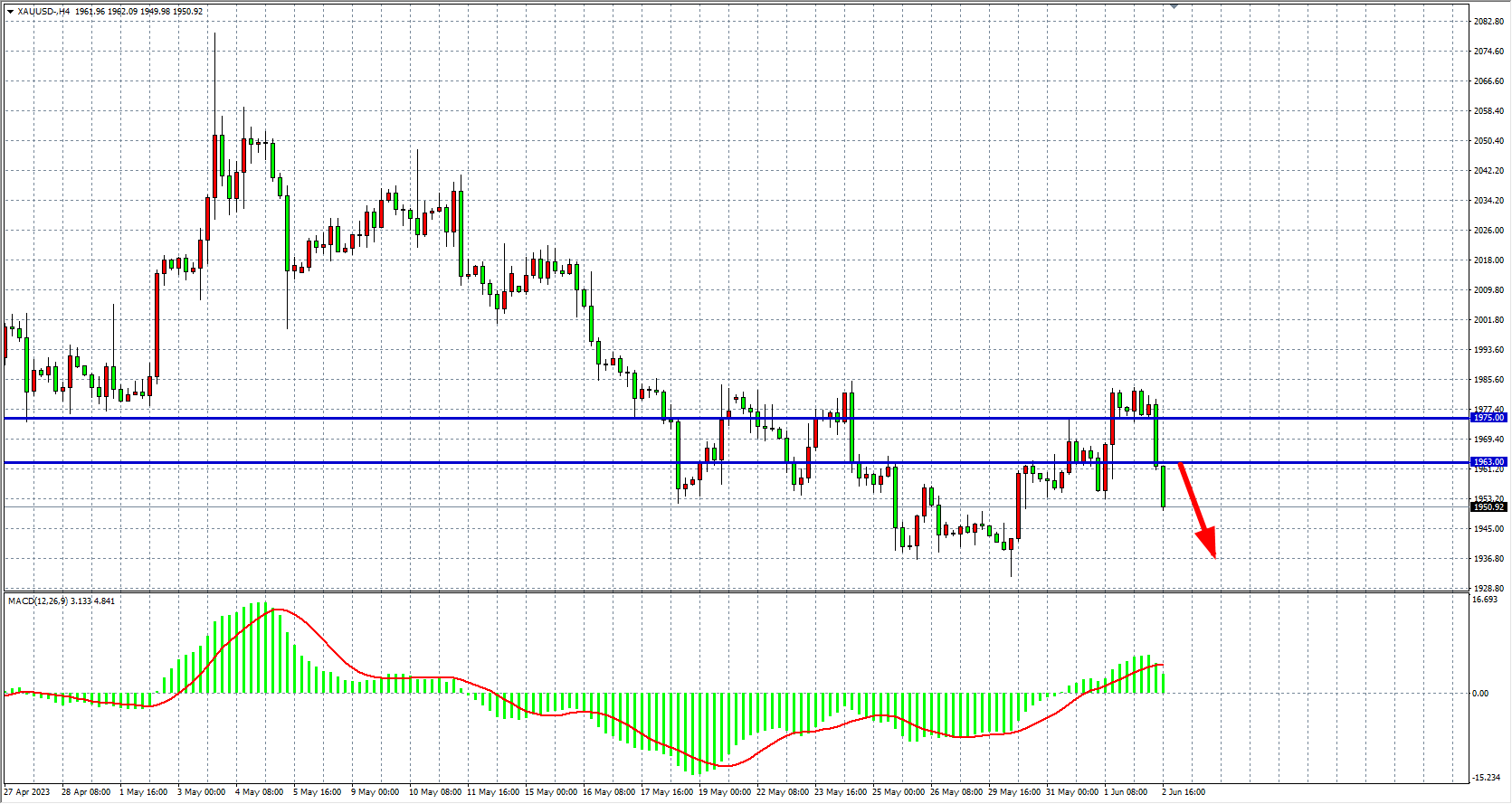 现货黄金XAUUSD 四小时图
