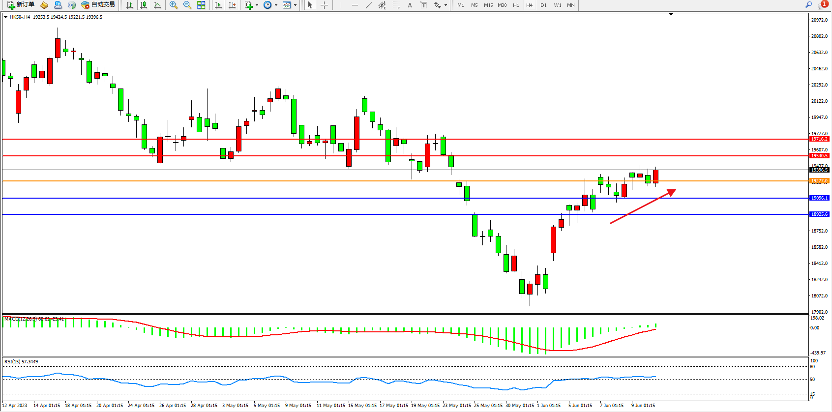 恒指HK50 4小时图