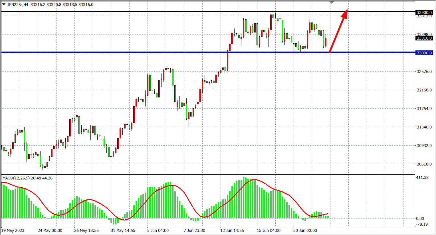 JPN225四小时图