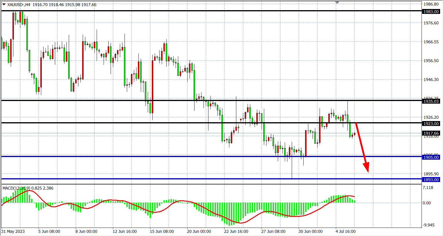 现货黄金XAUUSD 四小时图