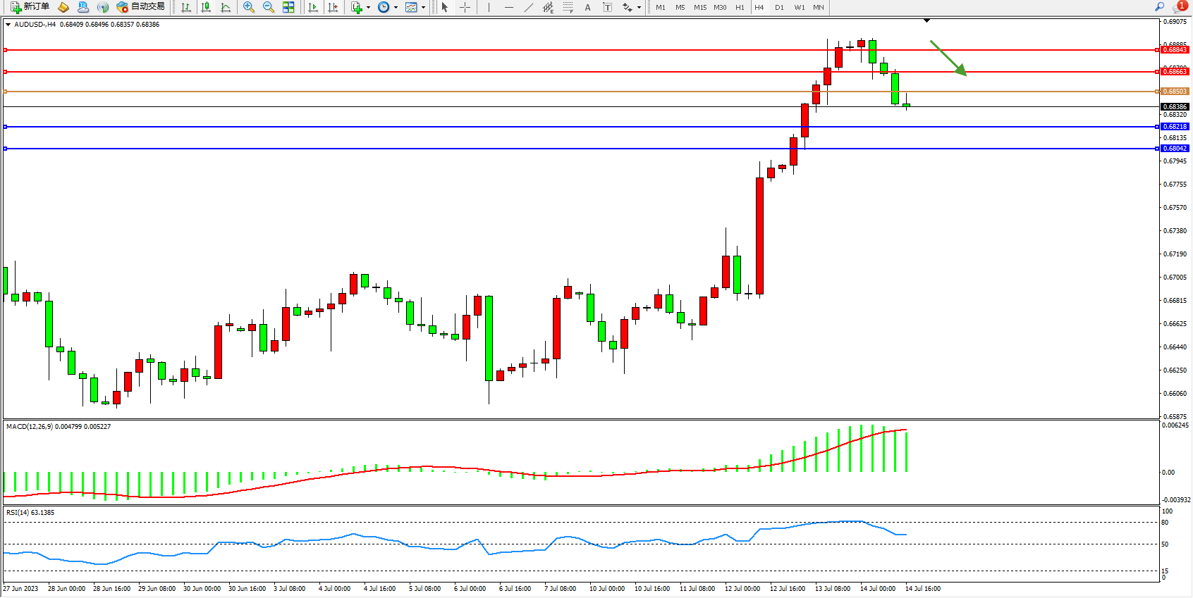 交易策略:0.68503下方看跌,目标0.68218 0.68042