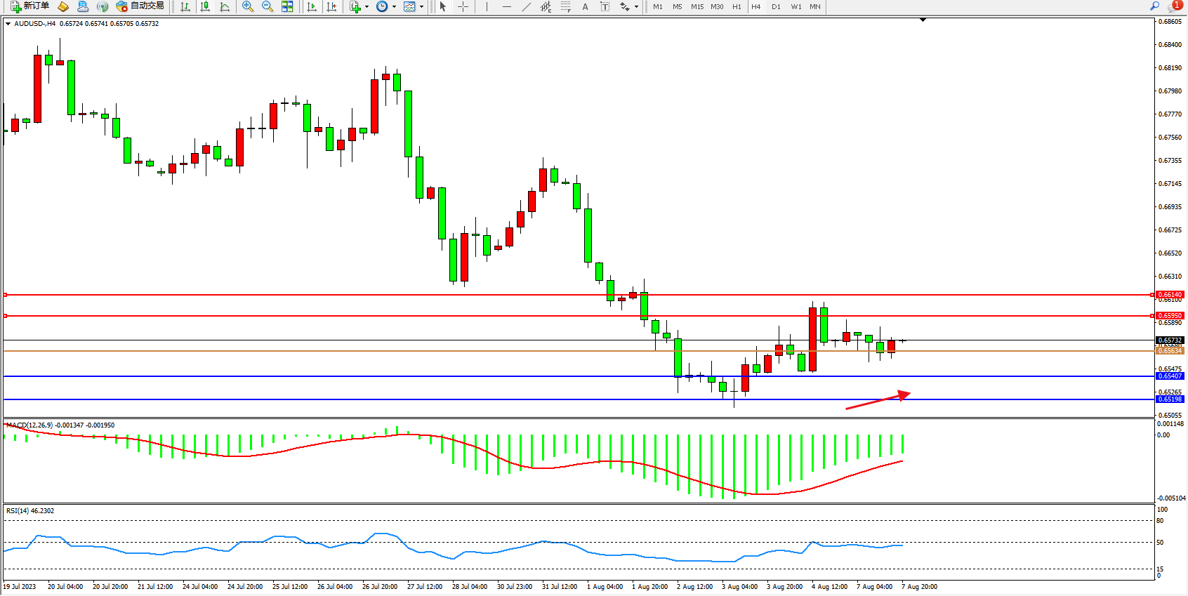备选策略:0.65634下方看跌,目标0.65407  0.65198