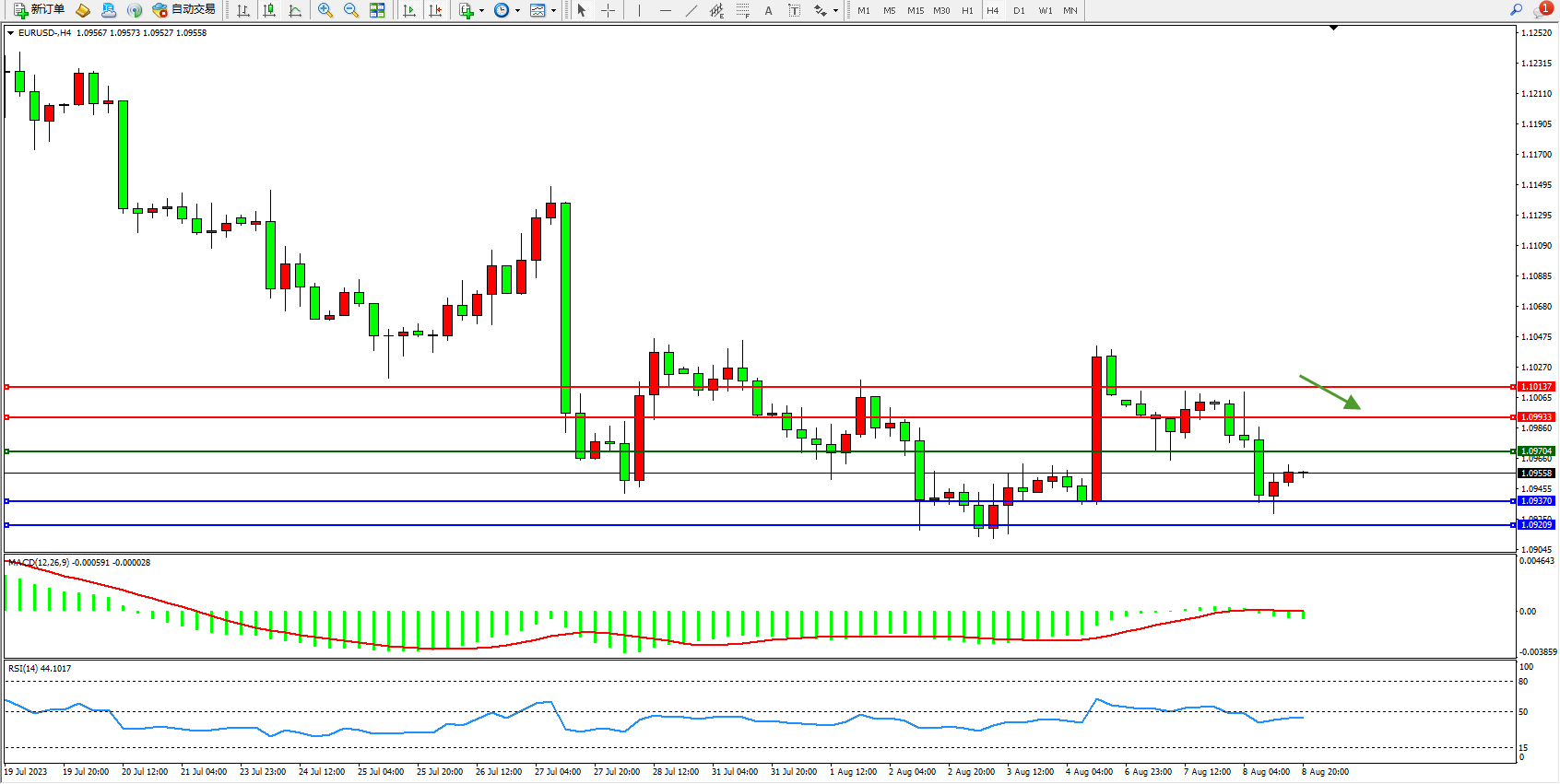 备选策略:1.09704上方看涨,目标1.09923  1.10137