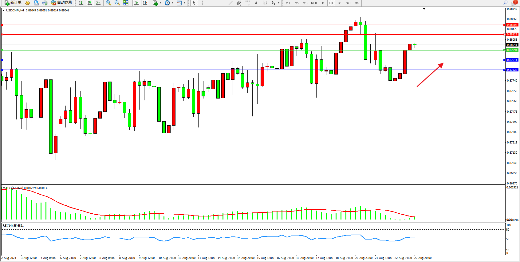 备选策略:0.87994下方看跌,目标0.87911 0.87827