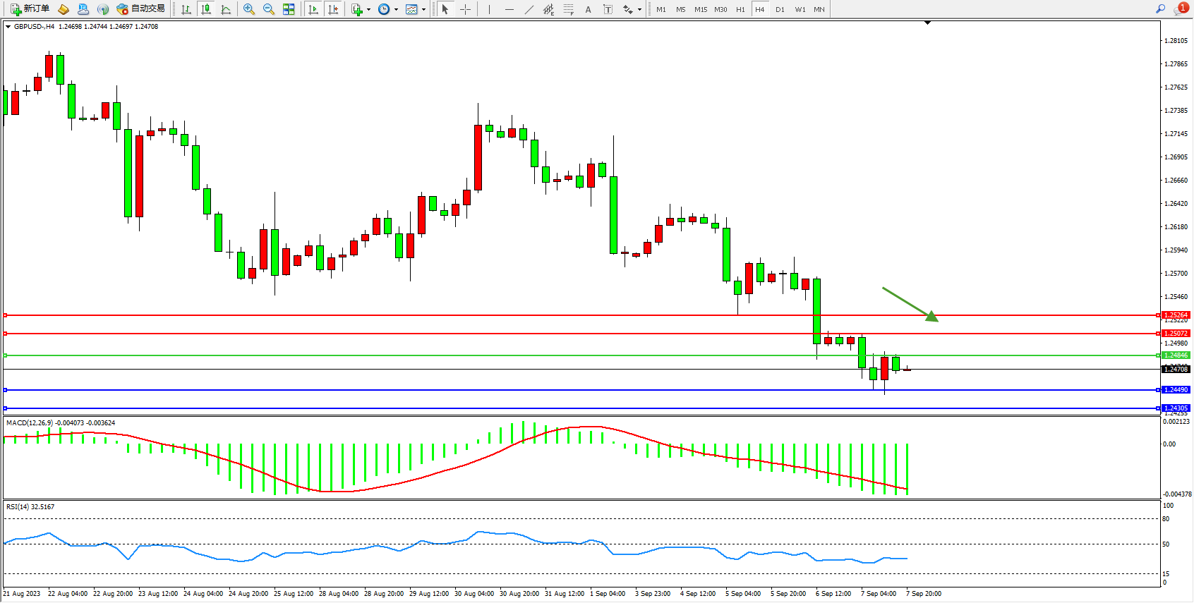 交易策略:1.24846下方看跌,目标1.24490  1.24305