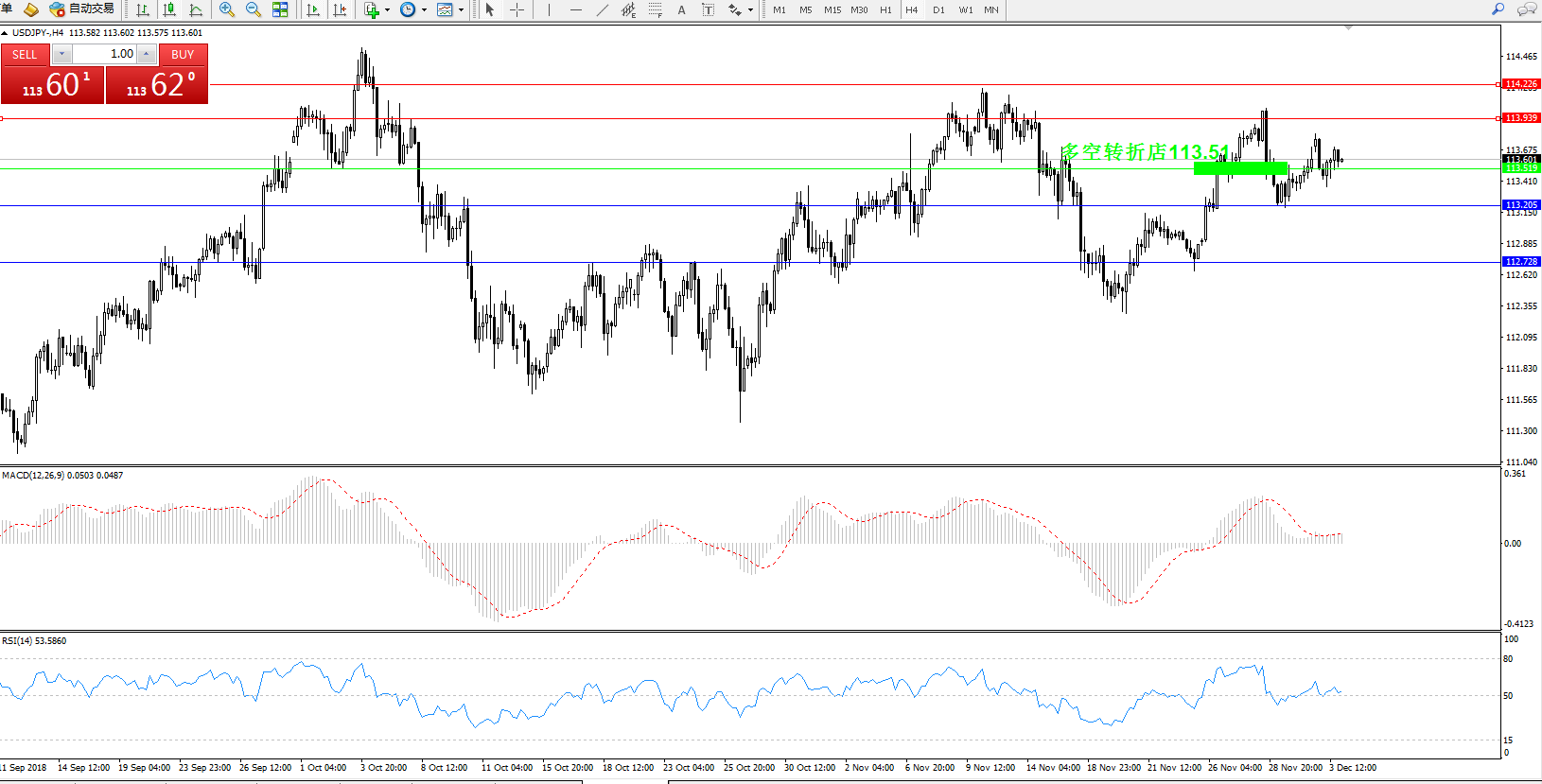 备选策略:113.51下方看跌,目标113.205、112.728;