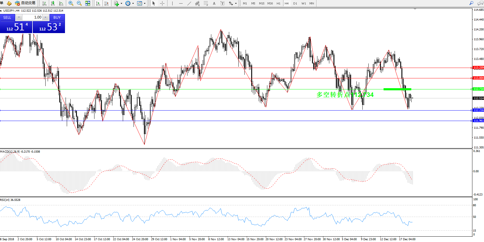 交易策略:112.734上方看涨,目标113.004、113.259