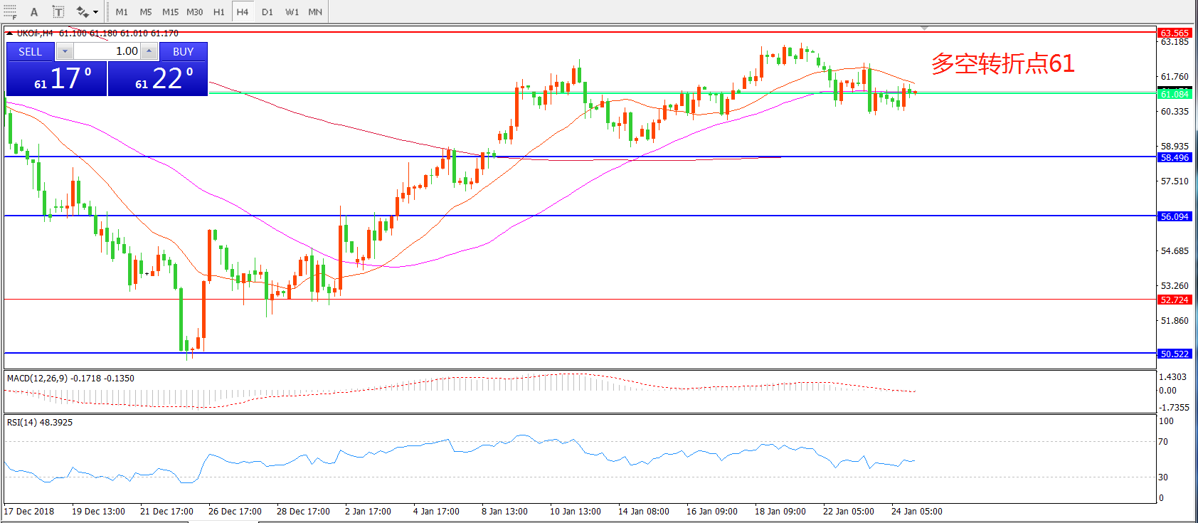 多空转折点:61.00