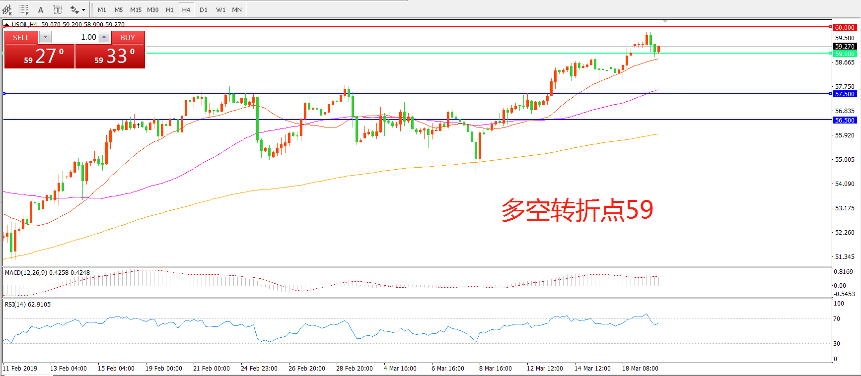 3月19日周二,虽然减产行动依然为油价提供支撑,但市场在EIA库存报告以及美联储政策决议公布前保持谨慎,这令油价整体持稳于平盘附近。美国WTI原油周二(3月19日)收跌0.06美元,报59.03美元/桶。3月20日凌晨,美国石油协会公布API原油库存数据,预期减少77.5万桶,实际减少213.3万桶,利多油价。晚间22:30将公布EIA原油库存数据,目前市场预期减少77.5万桶,重点关注。