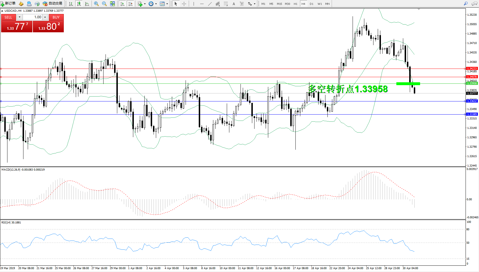 交易策略:1.33958下方看跌,目标1.33632、1.33389