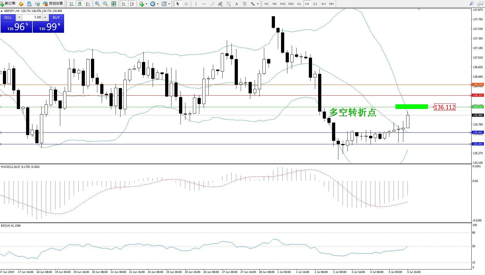 交易策略:136.112下方看跌,目标135.651135.441