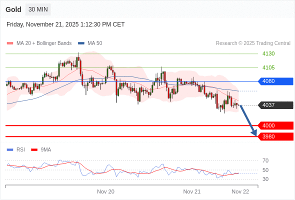 在 4080 之下,看跌,目标价位为 4000 ,然后为 3980 。