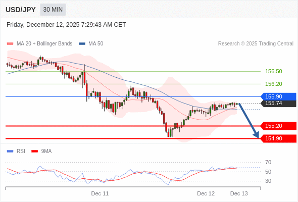 在 155.90 之下,看跌,目标价位为 155.20 ,然后为 154.90 。