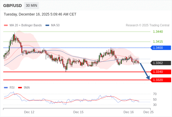 在 1.3400 之下,看跌,目标价位为 1.3340 ,然后为 1.3320 。