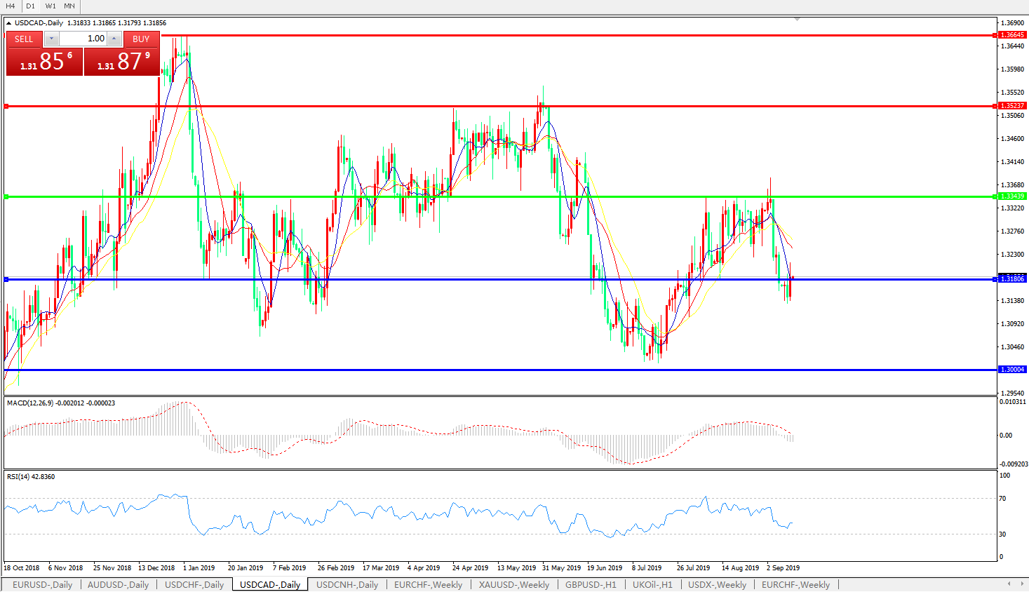 美元兑加元USDCAD    日线