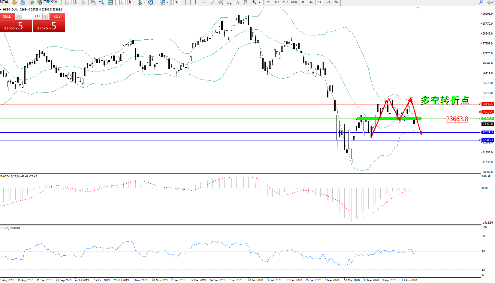 香港恒生指数5月4日(周一)收盘下跌1029.79点,跌幅4.18%,报23613.80点;全天维持低位震荡态势,最终收盘重挫逾千点,港股三大指数均大跌超4%,首季“三桶油”大幅亏损,中石化、中石油股价均大跌近9%;三大航空股皆重挫,南航跌超6%;恒指成份股无一飘红,腾讯、友邦保险、工商银行皆大跌超4%。因美国总统特朗普威胁将就冠状病毒疫情采取报复行动,市场风险情绪恶化,且大型企业的盈利预警导致股市大跌。鉴于疫情的影响范围之大,随着封锁措施解除,地缘政治紧张局势升级的风险肯定很高;这显然将是全球贸易受到的又一次打击。