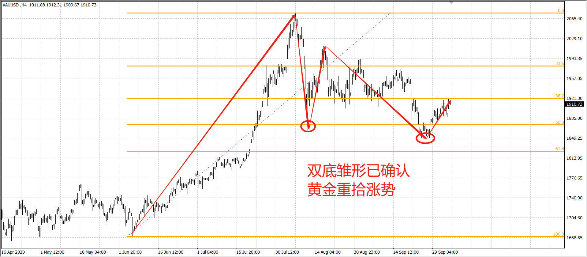 在特朗普确诊新冠的消息影响下,黄金重回1910美元并创出两周新高,主要原因是特朗普的确诊再次引起了全美卫生环境的恶化及担忧,此外由于疫情的影响加速了美国国会将达成最新一轮刺激计划的预期,受此影响美指重拾跌势,黄金在本周有望延续上周整体上涨走势,毕竟长期货币宽松加上长期低利率的环境不变,黄金的中长期利好仍未消失。美指能否进一步走弱,对黄金短期的涨势具有非常重要的指导意义。