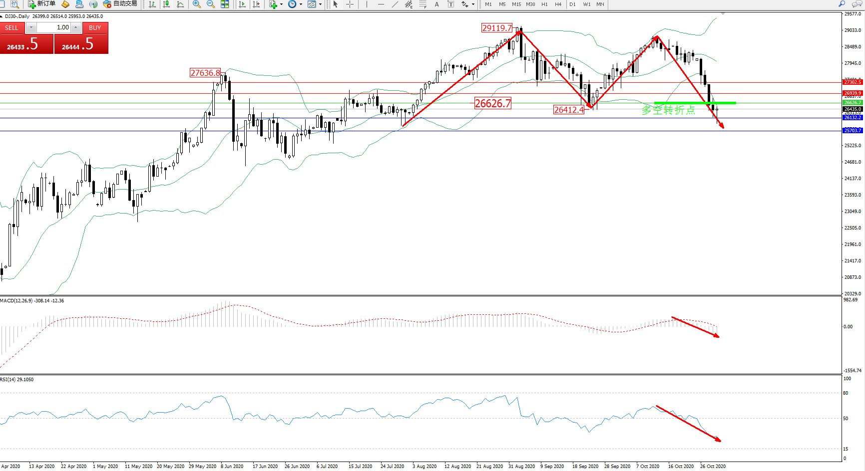 道琼斯指数DJ30—— 日K线图显示: