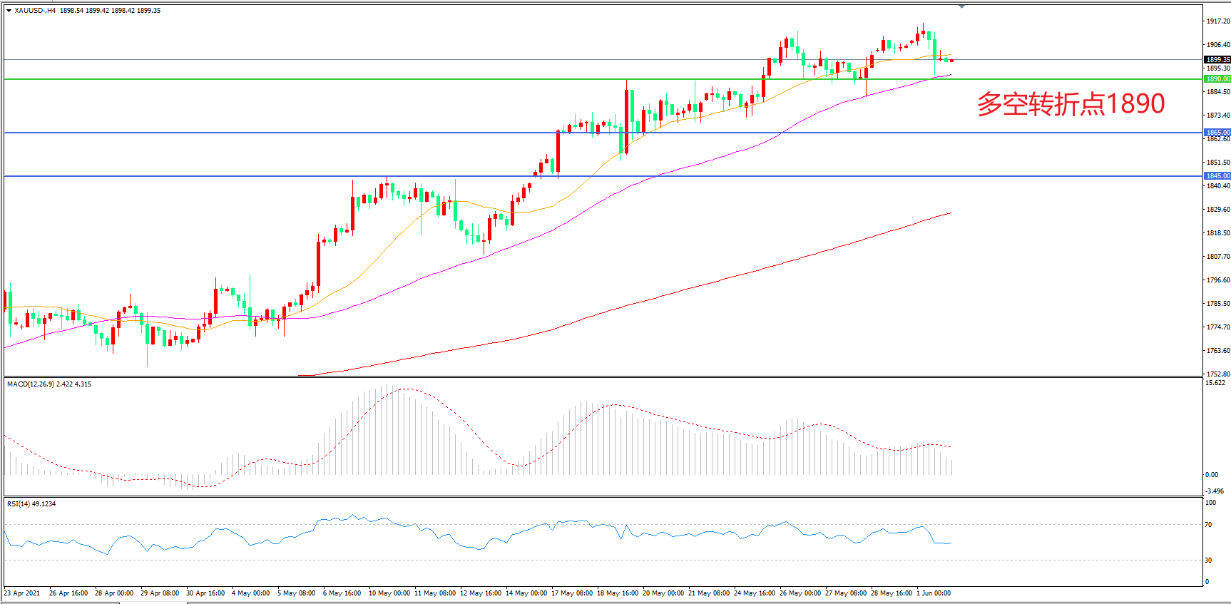 交易策略:在1890.00之上看涨,目标1910.00 1935.00