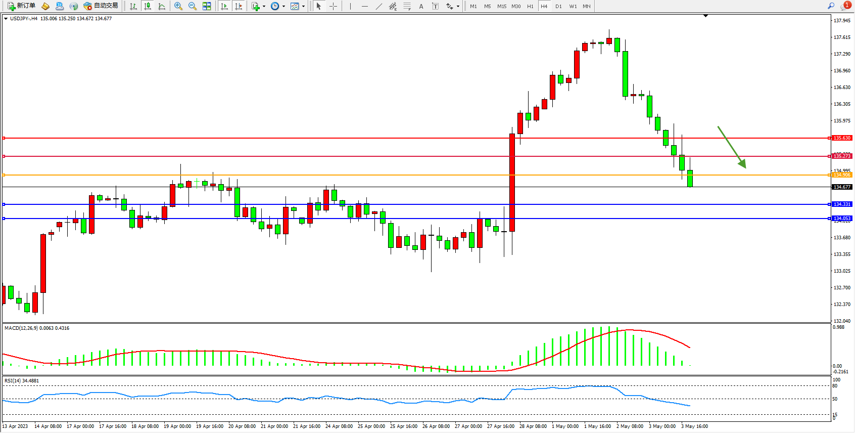 美元兑日圆维持134.677附近震荡,日本央行要到6月中旬才会再次开会,随着银行业危机逐渐淡出人们的视线,风险情绪已经企稳,进一步削弱了对避险日元的需求。
