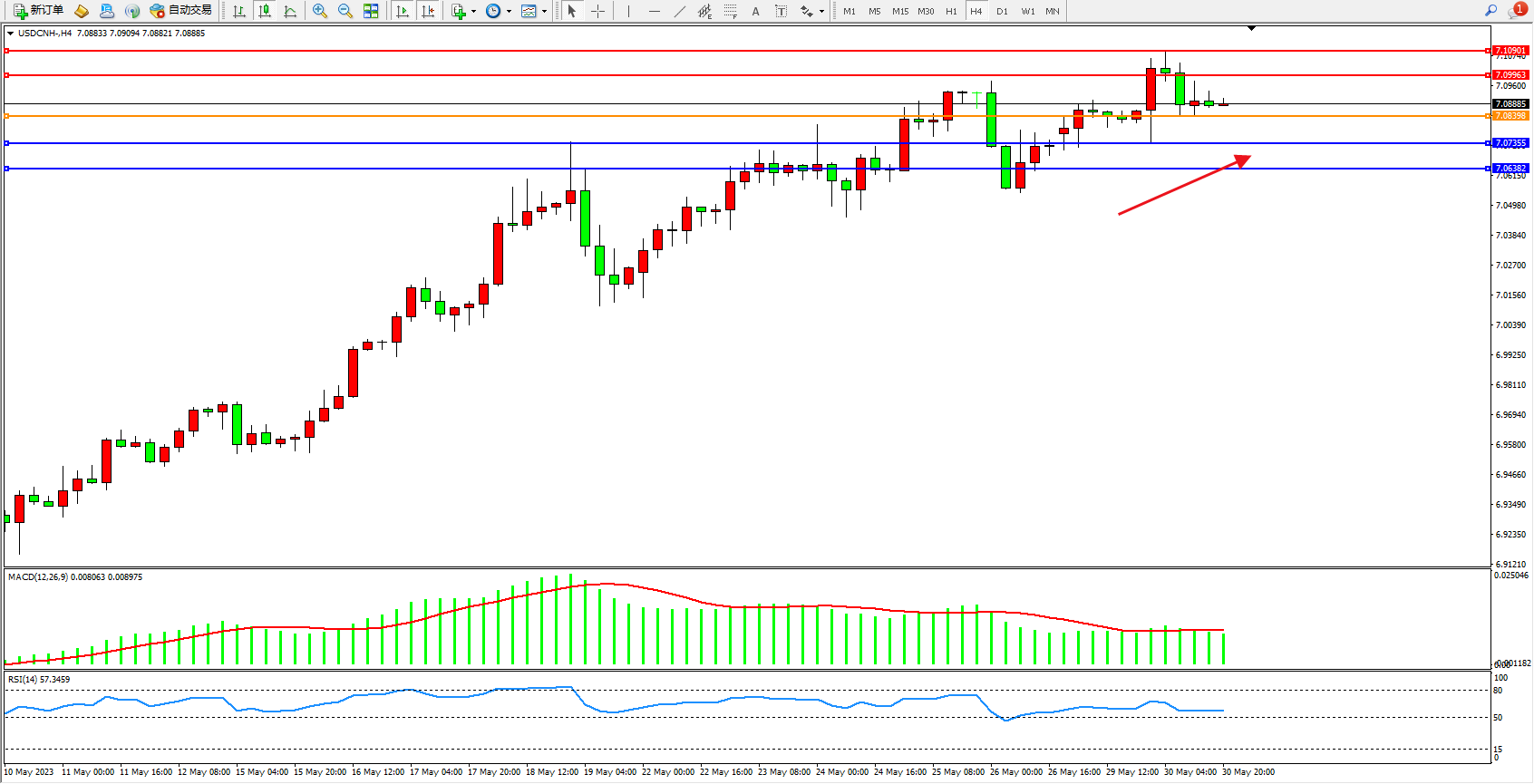 交易策略:7.08398上方看涨,目标7.09963  7.10901
